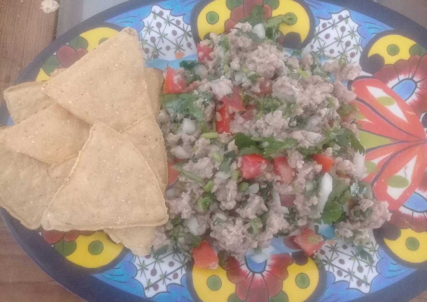 - Mientras se cuece la carne con el limón, picar el cilantro, la cebolla, el tomate y el chile (puede quitarle las semillas para que no pique)