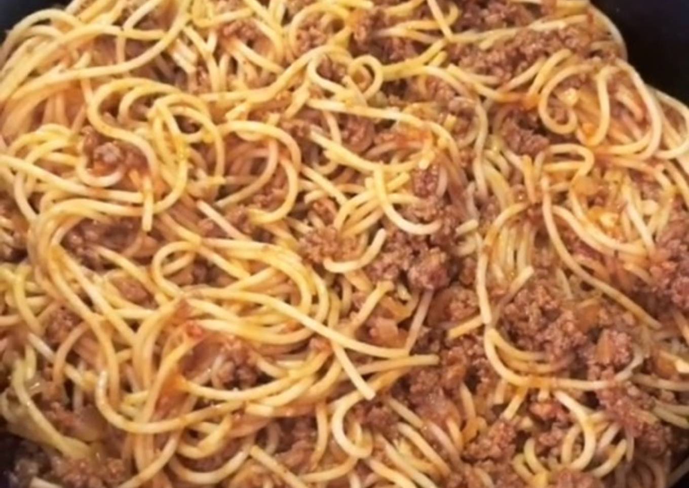 - Finalmente vacía el espagueti ya cocido en la olla de los demás ingredientes, mezclar y listo para servir y disfrutar. Puedes agregar queso parmesano al gusto.