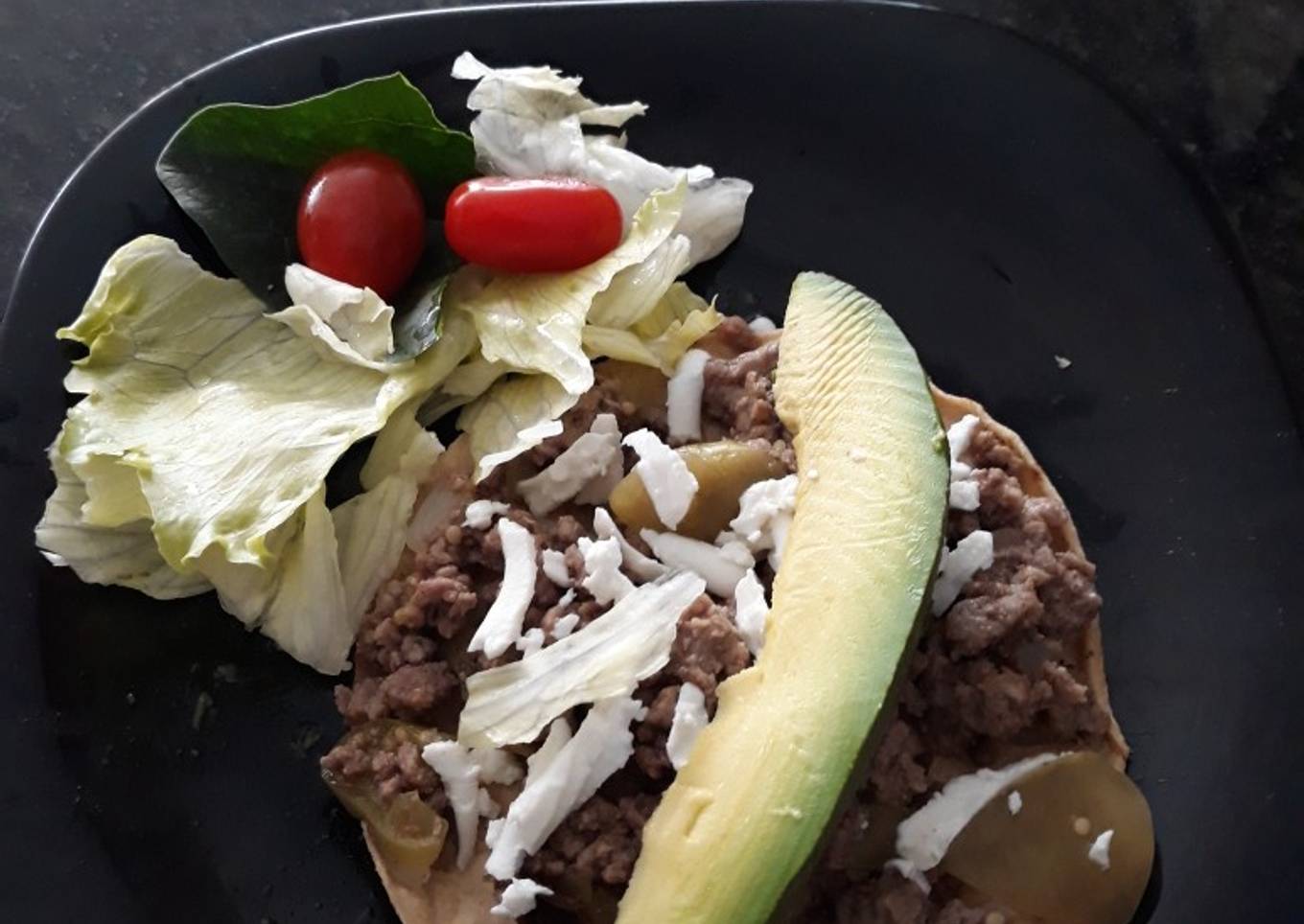 - Guisar la carne con sal, ajo, pimienta y orégano, a fuego regular, cocida la carne; agregar los demás ingredientes, por 5 min más, ya cocida la verdura, servir en tostadas con queso y aguacate 😋