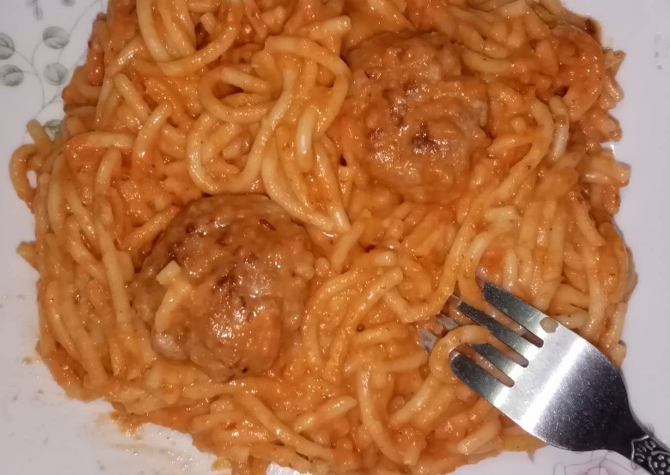 - Hay que estar pendientes de nuestra pasta, una vez que la salsa cambié de color, es decir se ponga más naranjita y comience a medio sacar una que otra burbujita es momento de agregar las bolitas que carne, de igual forma con cuidado.