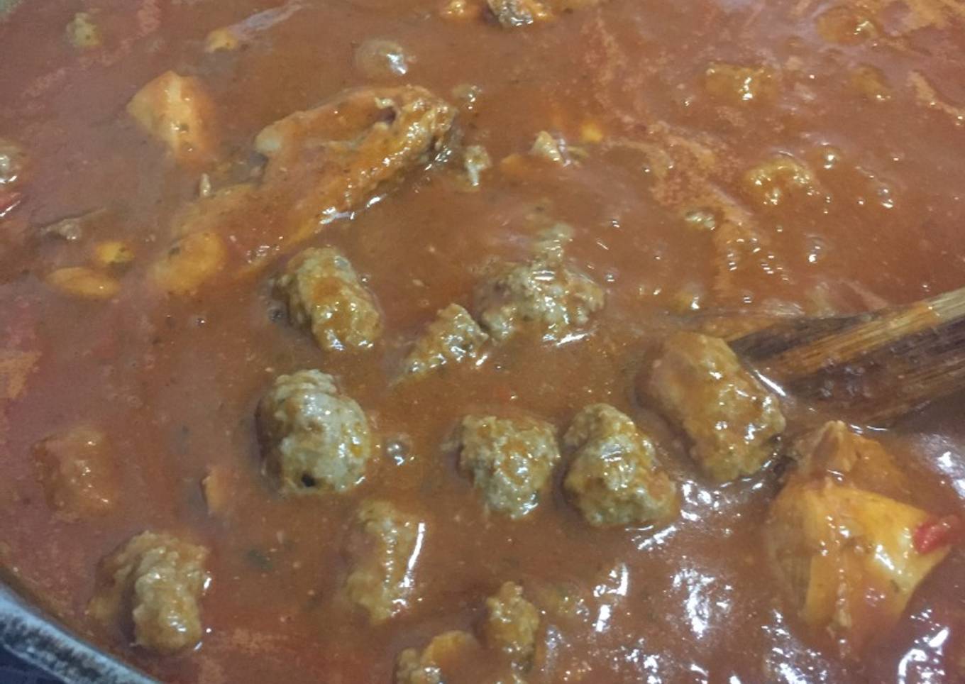 - OPCIONAL: para reforzar la salsa yo le agregué pechugas de pollo picadas, pero no es lo usual, yo quería una salsa más poderosa.