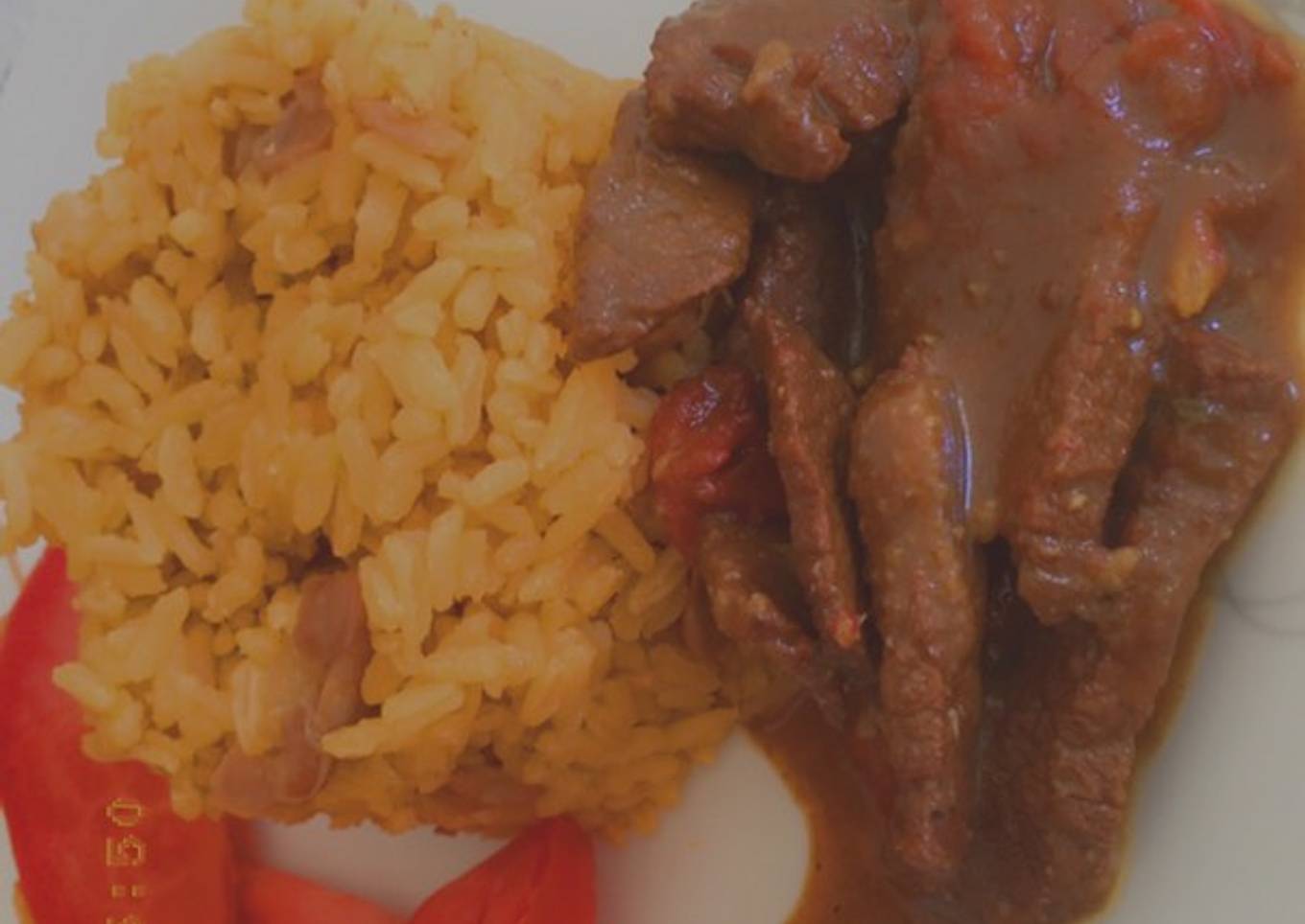 Fajitas de res guisada 🥩 con moro de habichuelas con coco🥥