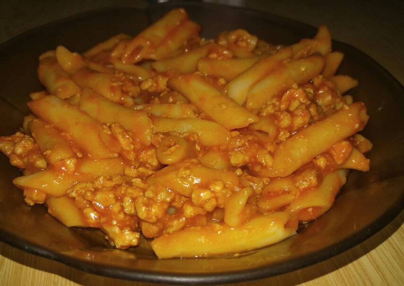 Macarrones con tomate y carne