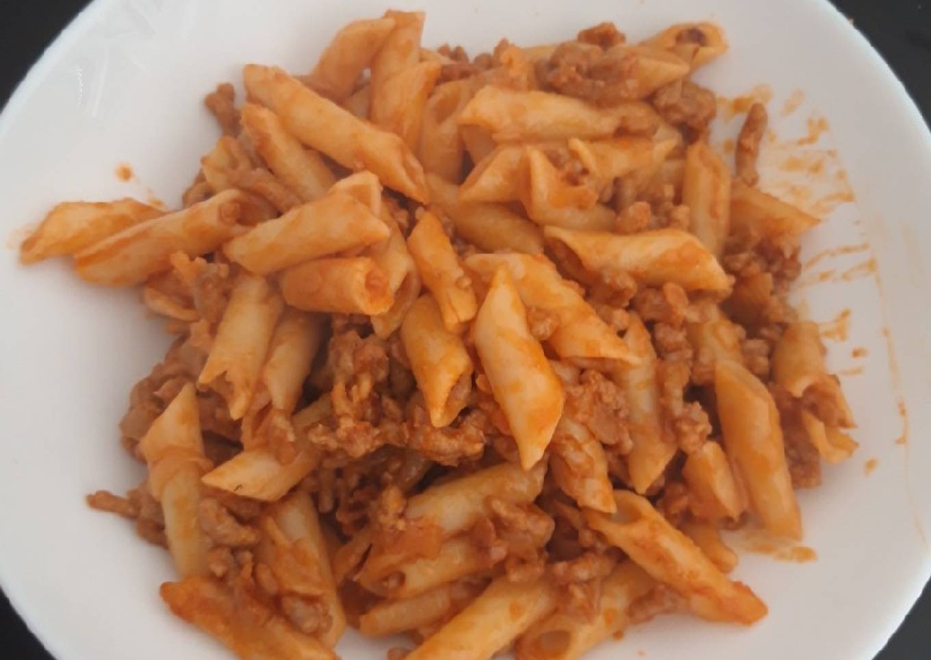 Macarrones con carne picada y cebolla