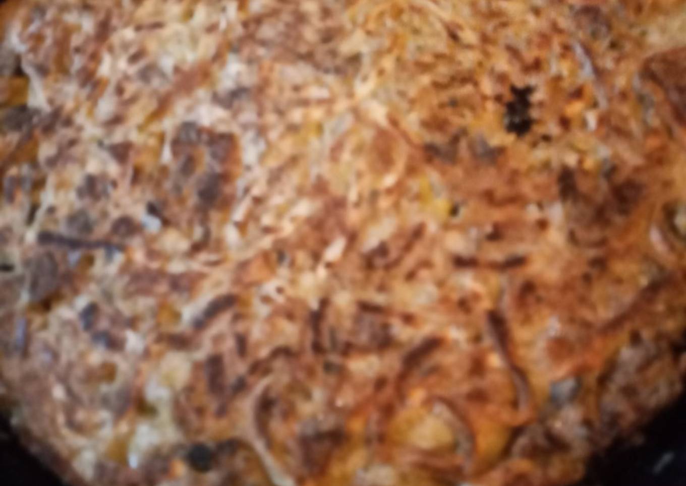 - En un sartén calentar muy poco aceite y poner la mezcla darle forma del sartén, dorar y dar vuelta. Servir de comida o aperitivo.